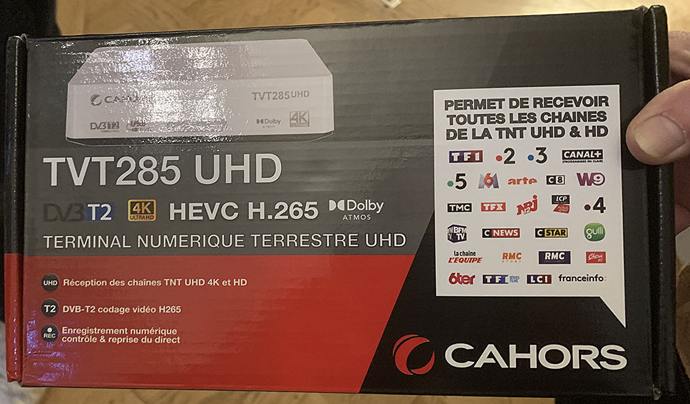 En primer lugar, pudimos descubrir el primer descodificador TNT Ultra HD 4K firmado por la empresa francesa Cahors (ver foto abajo) que permite visualizar en un televisor 4K UHD una señal adecuada sin ciertos componentes 4K TNT. Evidentemente, este decodificador también gestiona señales HD. No hay duda de que otros modelos estarán disponibles rápidamente, en los próximos meses, en las tiendas.