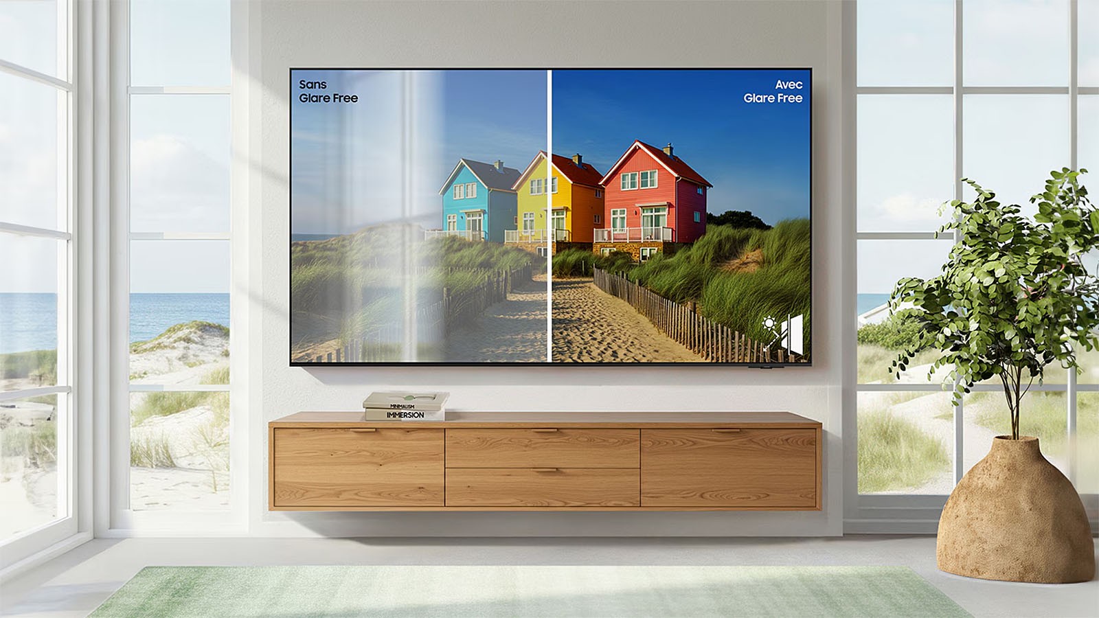 Concéntrese en la tecnología antirreflejo Glare Free de Samsung para televisores