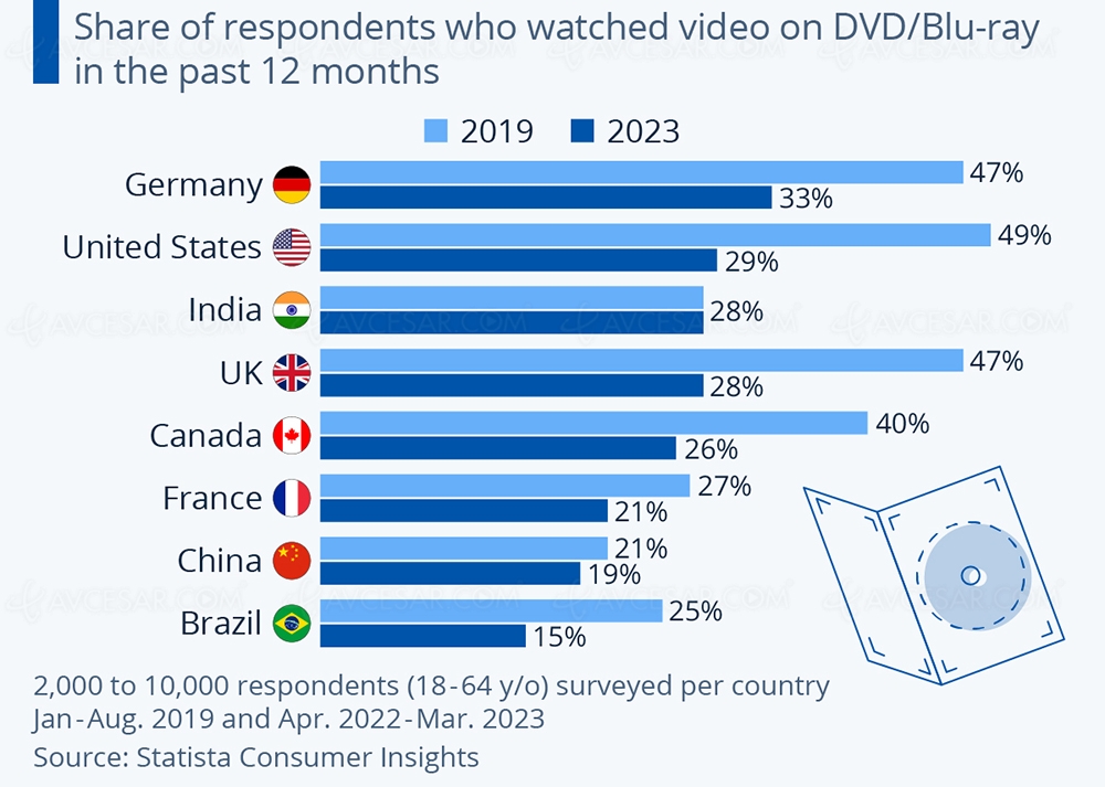 Evolución del mercado DVD/Blu-Ray desde 2019 por paÃs