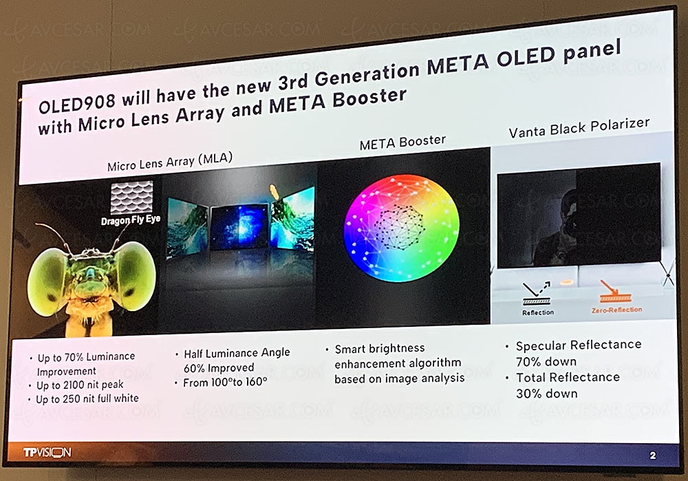 Televisor Philips OLED909: Panel Meta 2.0 (MLA Multi Booster), 3.000 nits, P5 Dual Engine Gen8, Game Bar, Ambilight Plus, 3.1