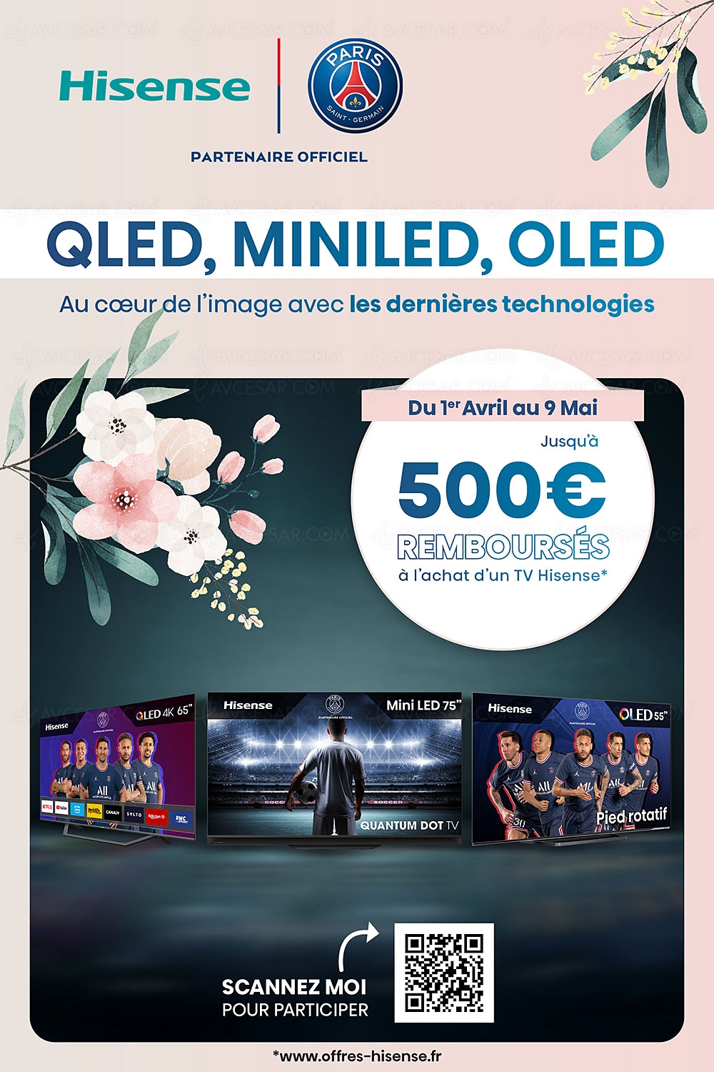 Oferta de reembolso del televisor Hisense 4K Ultra HD LED/Oled, hasta 500 € reembolsados