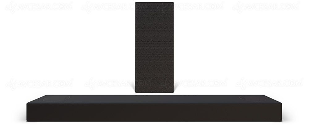 Sistema de audio 3.1.2, el LG S75Q se presenta en forma de barra de sonido con un diseño clásico, de 89 cm de largo, 6,5 cm de alto y 11,5 cm de profundidad, acompañada de un subwoofer inalámbrico (boomer de 20 cm). Tenga en cuenta que el LG S75Q tiene dos altavoces Up-Firing y no tres como en el S80QY, S80QR y S95QR.