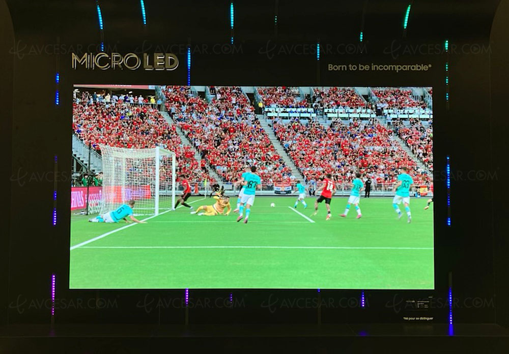 ¡Nuevo proceso de producción de Micro LED con paso reducido! Como recordatorio, esta nueva referencia integrará la nueva generación de placas Micro LED basadas en tecnologÃa LTPS (Silicona policristalina de baja temperatura) TFT (Transistor de pelÃcula delgada). Estos son semiconductores muy delgados que se pueden usar en televisores Micro LED en lugar de los circuitos impresos más voluminosos (PCB: placa de circuito impreso) a bordo hasta ahora. Este nuevo proceso permite una reducción del tono (espacio entre pÃxeles) de aproximadamente un 10%. Concretamente, este nuevo proceso de fabricación ofrece un pitch de 0,5 mm frente a los 0,63 mm actuales (el de 110''). Del mismo modo, también se han realizado cambios en los chips que integran los LED: sus dimensiones son de 75 x 125 micrómetros para el televisor de 110" y de 34 x 85 micrómetros para el de 101". Al final, dada la cantidad de pÃxeles presentes, la ganancia en distancia comienza a cuantificarse y, por lo tanto, es posible ofrecer una definición más alta en la misma diagonal, aquà Ultra HD 4K. Fotografía