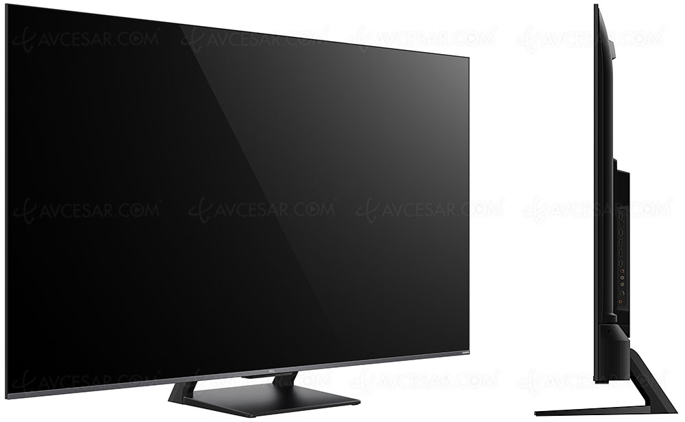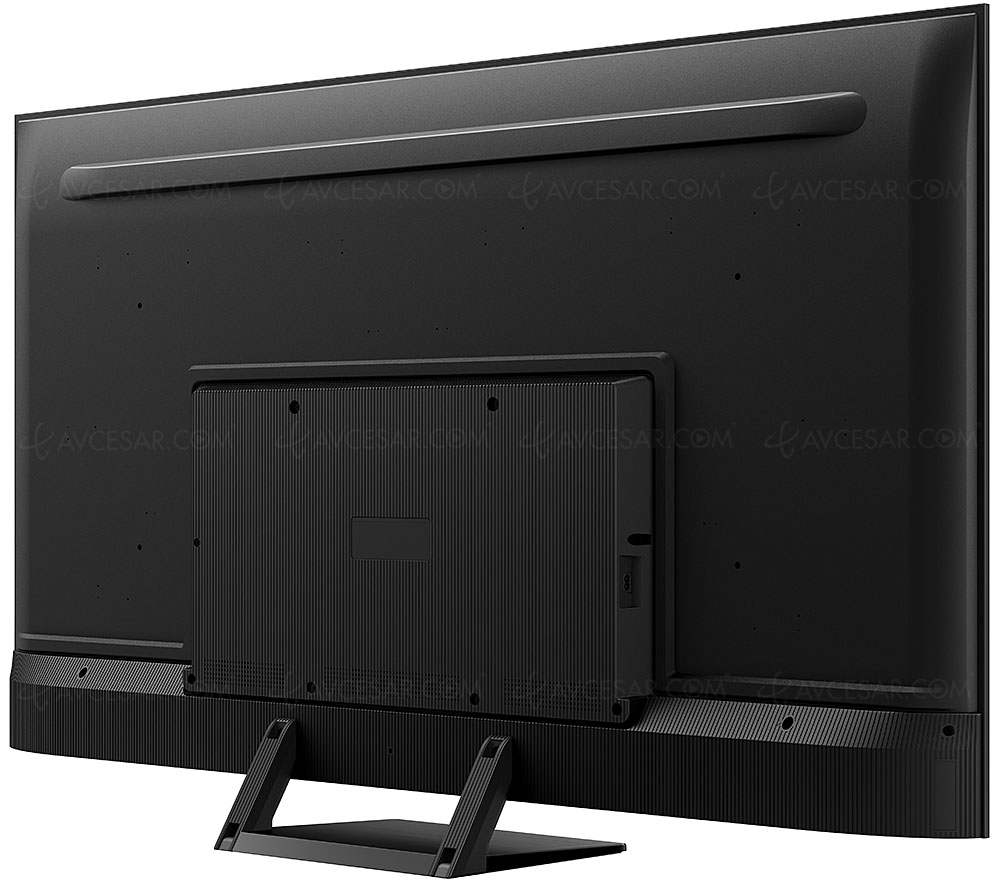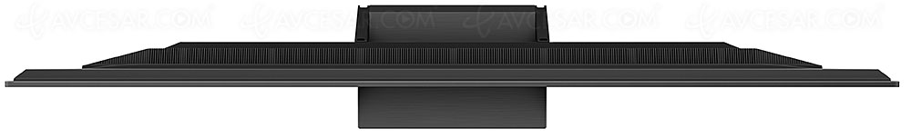 Como puedes ver en las fotos a continuación, los televisores muestran un diseño premium, en particular con una barra de sonido integrada, un acabado en color titanio y un soporte central. Y por razones de seguridad (mejor estabilidad), las muestras de 85'' y 98'' tienen un pie doble colocado en ambos extremos de la losa (ver foto a continuación).