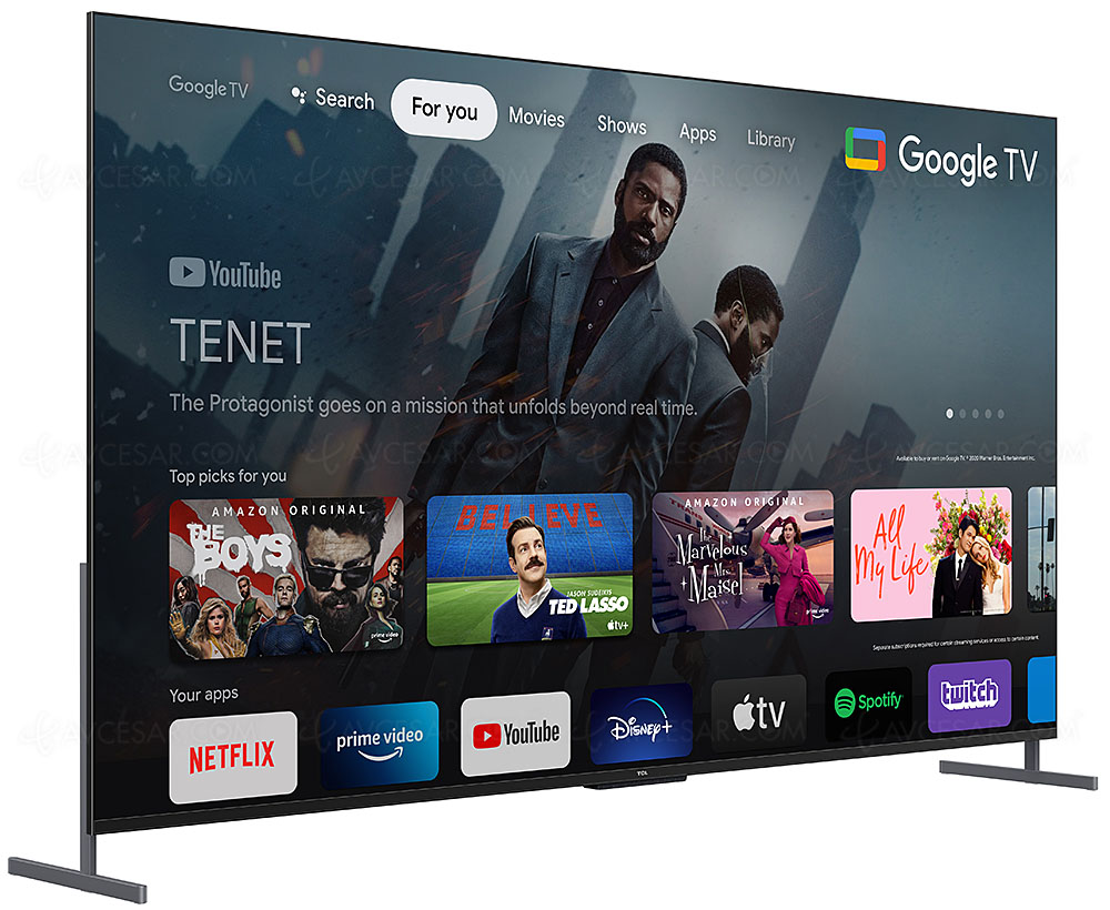 ¡Smart Google TV! Por supuesto, los televisores TCL C735 incluyen la función Smart Google TV (Android 11). Para la conectividad, se requiere la función Wi-Fi 5 además de Bluetooth 5.0. También destacamos las certificaciones AirPlay 2/HomeKit y Miracast, sin mencionar la función Multi View 2.0 que permite mostrar cuatro fuentes distintas en la pantalla.