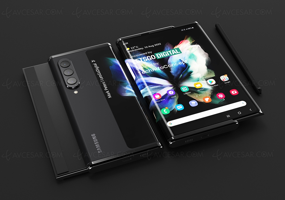Descubierto recientemente por Let's Go Digital e ilustrado en 3D por el diseñador Mark Peters, este nuevo documento describe un teléfono inteligente cuya pantalla se extiende hacia un lado, un poco como el concepto Oppo X 2021. Luego un 50% más grande, formando asà una pequeña tableta. Tenga en cuenta que para limitar su fragilidad, la pantalla es compatible con un marco secundario, más delgado que el del dispositivo principal.
