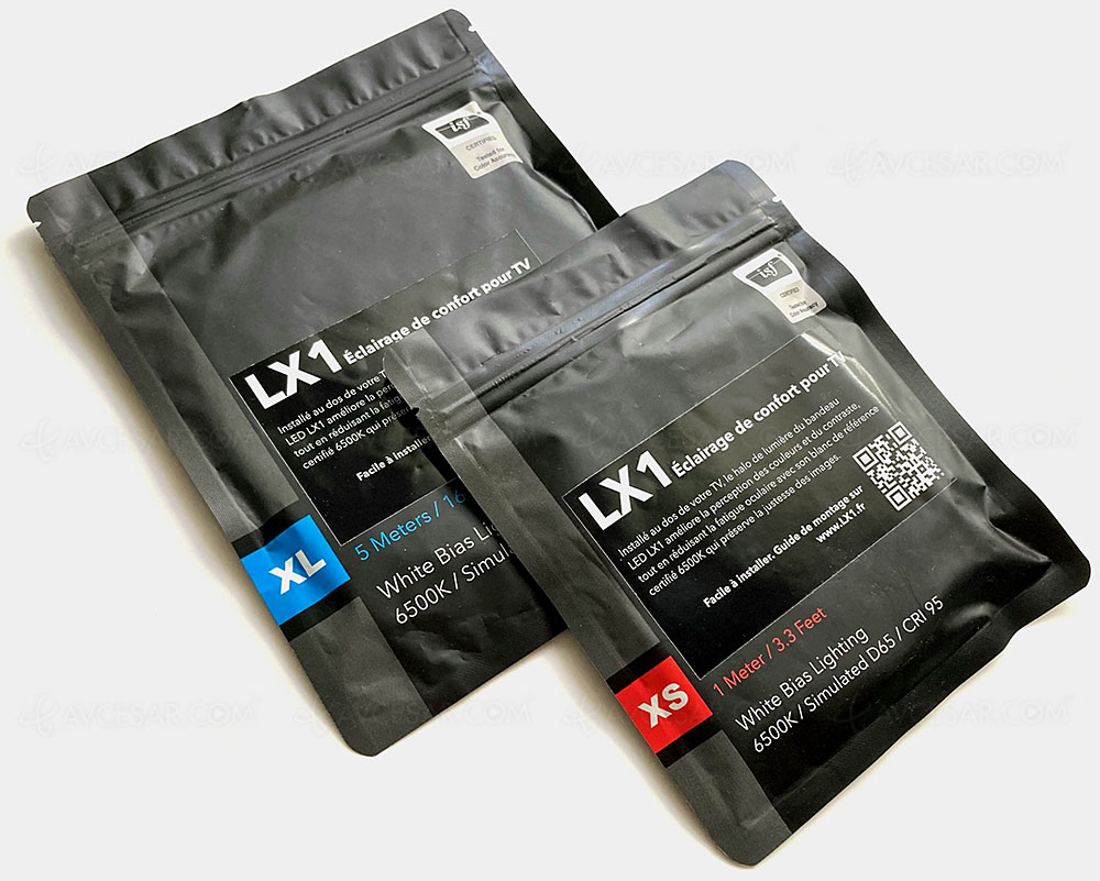 En resumen, estos LED generan luz ambiental, como el proceso Ambilight de los televisores Philips pero con especificaciones profesionales. Este es el blanco, a 6500 ° K CCT (temperatura de color correlacionada, estándar D65) certificado por ISF, es decir, perfectamente idéntico al del blanco de referencia utilizado para monitores profesionales. También tiene un Ãndice IRC (Ãndice de reproducción cromática, llamado CRI en inglés) de 92/100 (contra 98/100 para el Medialight MK2). Es decir, este valor indica la capacidad de una lámpara para permitir una distinción de color precisa. Por lo tanto, no distorsiona en modo alguno los colores que se muestran en la pantalla del televisor. Última precisión, el LX1 tiene una densidad de 20 LED por metro contra 30 LED / m en el Medialight MK2.