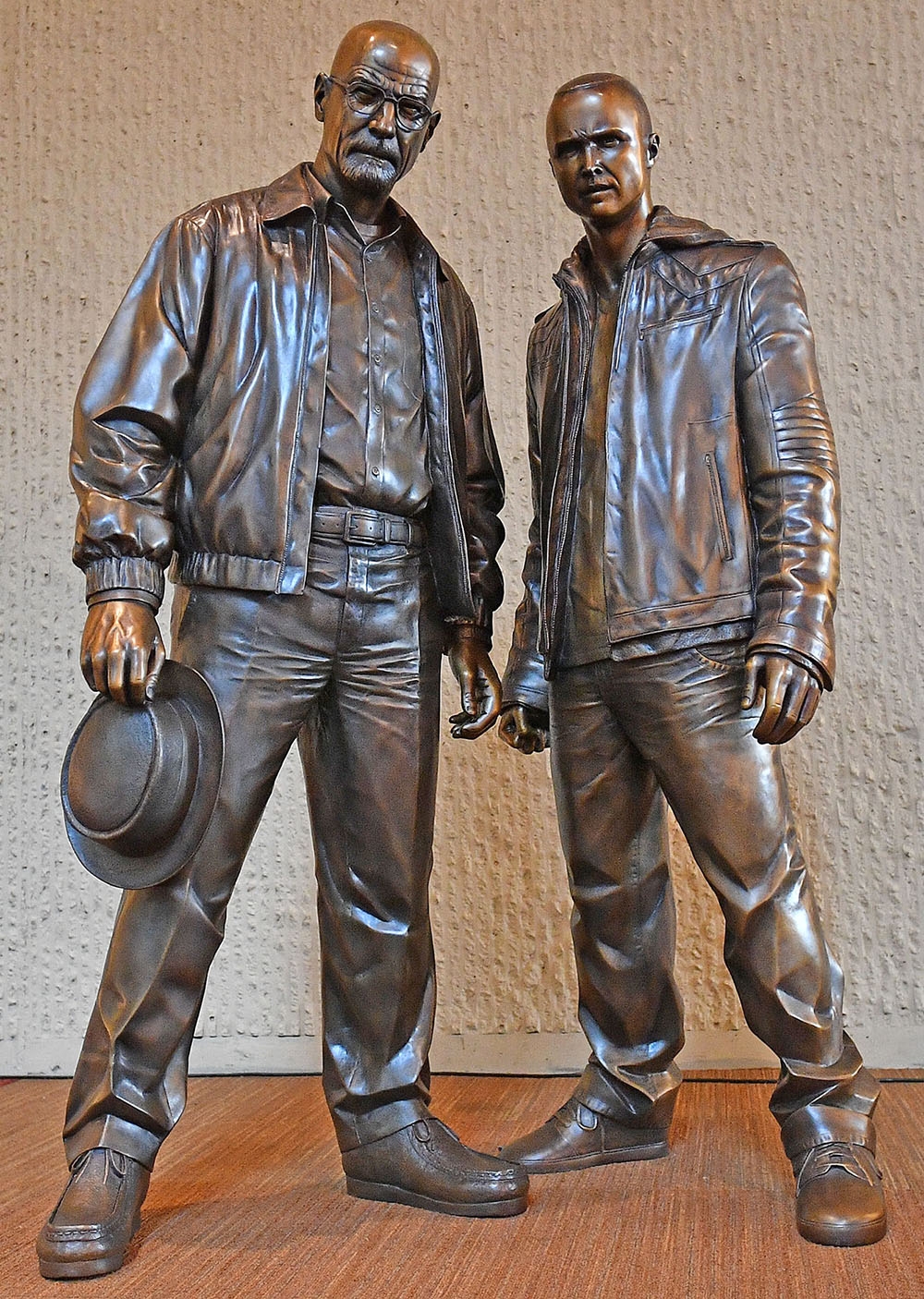 Pero ahora está hecho. Walter White -alias Eisenberg- y Jesse Pinkman ahora tienen derecho a su estatua en el Centro de Convenciones de la ciudad de Albuquerque. Más que una criminalidad desvergonzada, este monumento hace más honor a la serie de culto Breaking Bad que -entre otras hazañas- puso a Albuquerque al frente del escenario.