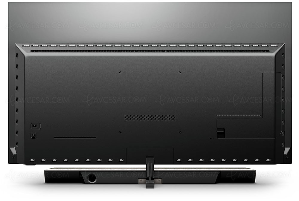 Con una potencia total de 95 W, la barra de sonido (disociada del chasis para eliminar las vibraciones sonoras que podrÃan transmitirse a la pantalla) en ABS reforzado (fibra de vidrio para una rigidez extrema) y cubierta con un kvadrat Por tanto, fabric se estructura, además de los dos altavoces añadidos en los extremos de la barra de sonido, en torno a tres tweeters de 19 mm (desacoplados de la caja para aumentar el rendimiento). El colocado en el centro adopta la configuración Tweeter-On-Top (ver ilustración a continuación), por lo que en la posición "sin deflectores" y ligeramente por encima del altavoz como su nombre indica, se beneficia de su propia carcasa rÃgida de metal. Luego hay cuatro medios de 45 mm, dos en el centro y los otros dos en cada extremo de la barra de sonido. Para la reproducción de bandas sonoras de Dolby Atmos, se colocan dos controladores de altura de rango completo de 45 mm en una configuración ascendente en la parte superior del gabinete para irradiar hacia arriba. Finalmente, también está presente un woofer de 100 x 65 mm asociado con una ventilación Flowport (proceso B&W exclusivo), en la parte superior de la caja para bajos ricos y profundos. Es decir, también hay una salida Pre-Out para conectar un subwoofer externo si es necesario.