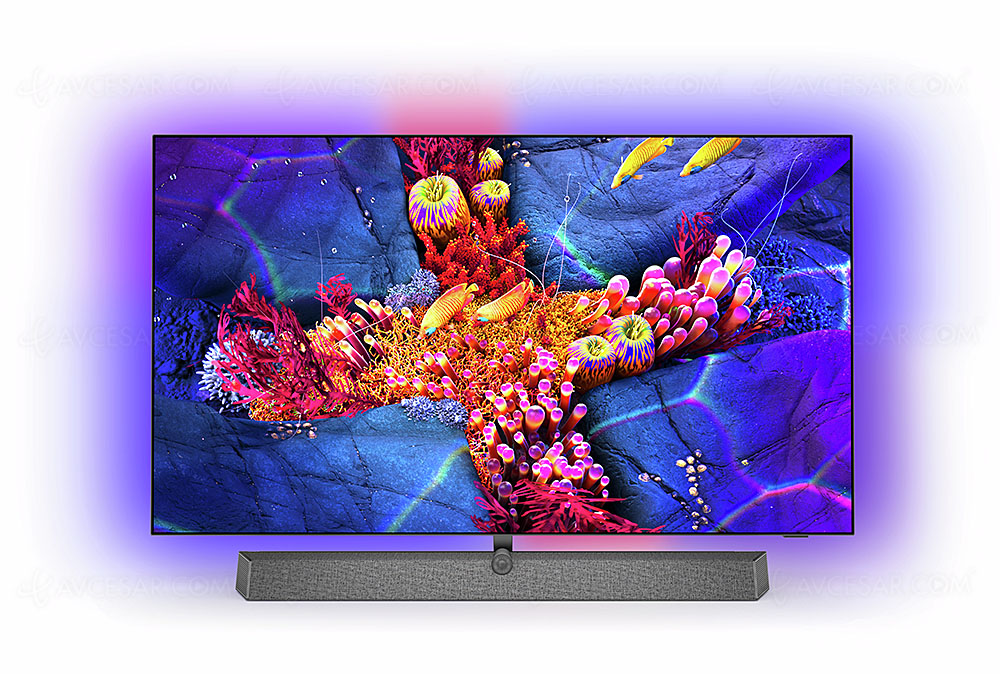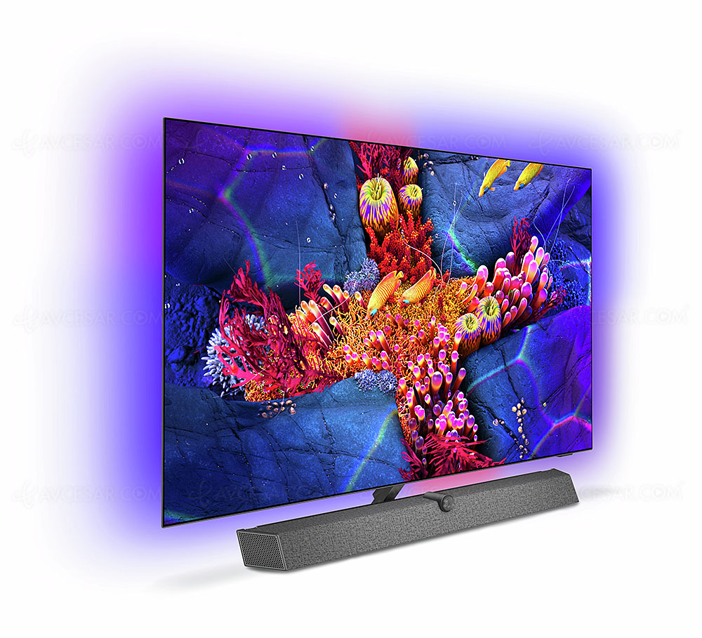 Por supuesto, el brillante proceso Ambilight aún se aplica, pero aquà en los cuatro lados. Y siempre es posible combinar el televisor con lámparas Philips Hue para un espectáculo de imagen, sonido y luz en casa. Sin embargo, la funcionalidad Ambiligt ahora administra los diodos de color ubicados en la parte posterior del televisor, alrededor del borde del panel, de forma independiente y ya no por grupos de diodos para una sincronización significativamente más precisa con las imágenes que se muestran en la pantalla. Finalmente, la nueva galerÃa Ambilight Aurora, rica en numerosas imágenes y videos a bordo, permite otras tantas atmósferas artÃsticas exclusivas en su sala de estar.