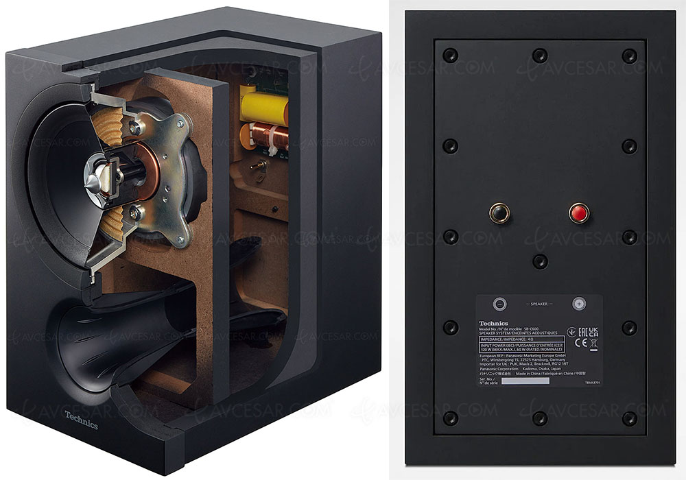 El Technics SB-C600 utiliza un altavoz coaxial de dos vías de rango medio / boomer-tweeter (25 mm con cúpula de aluminio de 150 mm) para lograr una consistencia espacial perfecta de estas frecuencias. Por supuesto, siempre está presente un ecualizador de fase lineal para evacuar las perturbaciones de fase y alinear la fase de las frecuencias alta y media.