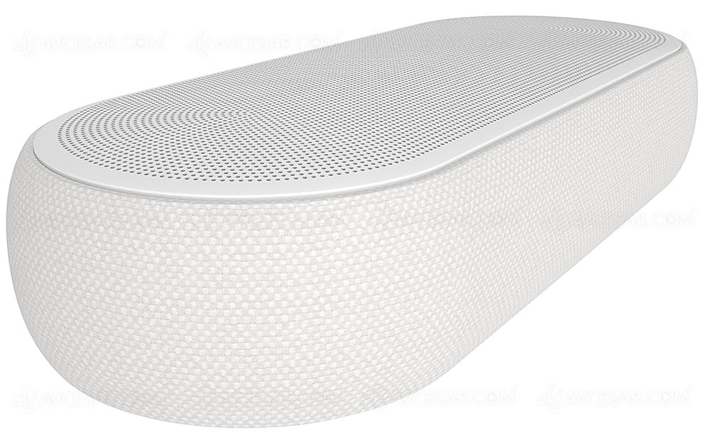 Para el subwoofer, hay dos altavoces montados uno al lado del otro para eliminar las vibraciones generadas por un subwoofer en las frecuencias de graves mono-direccionales. , equipado con un solo altavoz. Asimismo, el subwoofer del LG Eclair también es relativamente discreto gracias a sus dimensiones contenidas. Su amplificación de clase D ofrece 220 W, lo que eleva el total del LG Eclair a 320 W para siete altavoces.