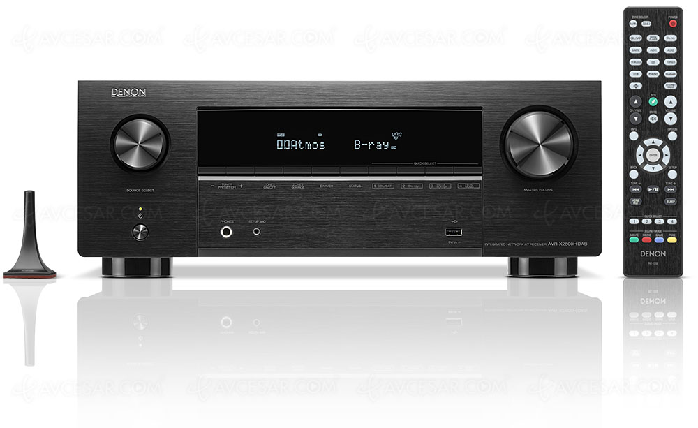 En el menú de nuevo para el Denon AVR-X2800HDAB, un Texas Instrument PCM5102A DAC (384 kHz/32 bits, 4 canales), certificación Spotify Connect, funciones AirPlay 2, Wi-Fi Dual Band y radios web TuneIn, el audio UPnP gateway (DLNA), Amazon Music, Deezer, Sound Cloud, compatibilidad con Tidal… Además, calibración automática Audyssey MultEQ XT, procesos Audyssey Dynamic Volume y Audyssey Dynamic EQ, DSD 2,8/5,6 MHz, Flac, Wav y Alac hasta 192 kHz/24 bits además de MP3, WMA y AAC, y gestión de una impedancia de salida de 4 u 8 ohmios. Sin mencionar la compatibilidad con la aplicación de pago Audyssey MultiEQ Editor y dos salidas de subwoofer (paralelas).