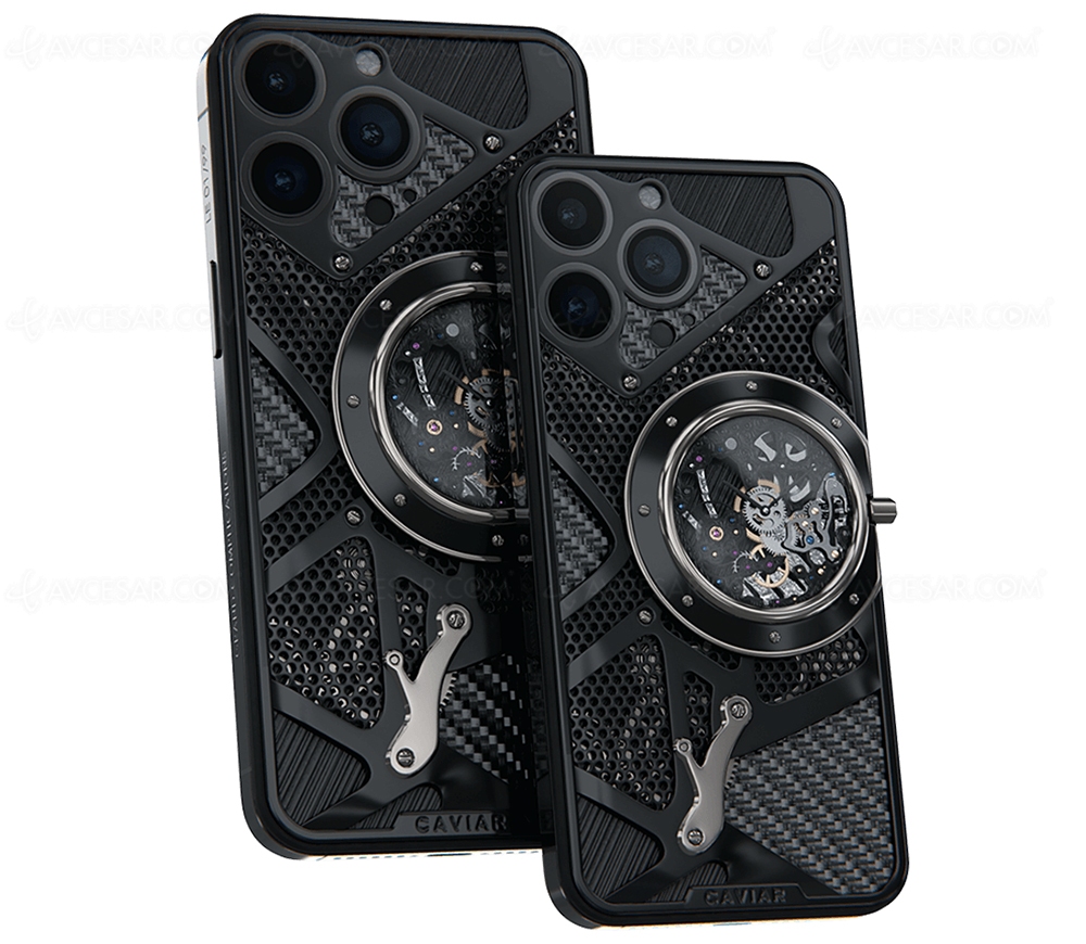 Estos dos nuevos modelos de la colección Grand Complications de Caviar se denominan Rolex Daytona y Skeleton Booster. El primero (ver foto a continuación) incluye literalmente un reloj Rolex Cosmograph Daytona integrado en la parte posterior del iPhone 14 Pro Max. Un reloj funcional, realizado en oro y diamantes. También destacan elementos decorativos como los indicadores -velocÃmetro, niveles de combustible y aceite- e interruptores funcionales, todo en oro de 18 quilates. La carcasa del iPhone es por su parte de titanio teñido de negro, el mismo que se utiliza en las esferas, cajas y brazaletes de Rolex.