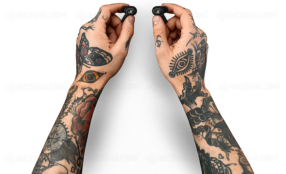 En el lado de la comodidad, a diferencia de los modelos Minor III que adoptan una configuración semi-intra, como los Apple AirPods, los Marshall Motif ANC son verdaderos en el oído. Es decir, se requiere la certificación IPX5 (protección contra chorros de agua) para los auriculares (resistencia a las salpicaduras de agua, por lo que se pueden usar bajo la lluvia), IPX4 para la caja de almacenamiento / carga. Los controles, para la música y el control de llamadas, son táctiles.