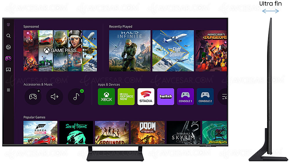 Otras ventajas exclusivas vinculadas al Samsung Gaming Hub, siempre a partir de los modelos Q70B (ver foto abajo), la opción de música + streaming por ejemplo para cambiar la banda sonora de un juego.A través del icono Nota de música presente en el menú, se Por lo tanto, es posible iniciar su lista de reproducción favorita en Spotify, luego salir de la aplicación e iniciar una sesión de Cloud Gaming. Otra posibilidad es aprovechar la funcionalidad Gran Angular Multivista para mostrar dos fuentes de video separadas en la pantalla, el juego, por supuesto, más un video de YouTube o un teléfono inteligente a través de Mirroring…