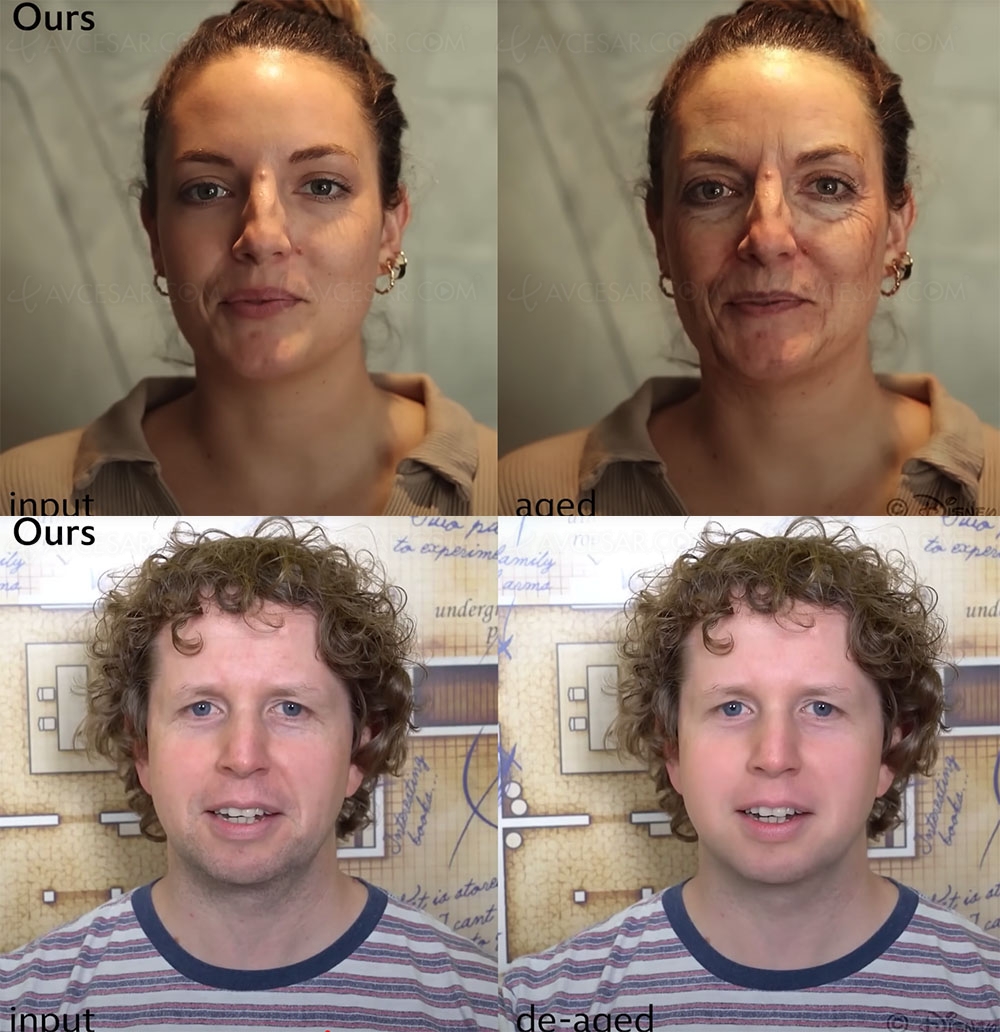 FRAN se alimenta de una base de datos de miles de rostros generados aleatoriamente entre 18 y 85 años. A partir de esta "biblioteca", el nuevo sistema de Disney puede extrapolar sobre la marcha el rejuvenecimiento o el envejecimiento de un actor o una actriz. No son imágenes fijas que luego habría que unir. FRAN agrega o elimina arrugas y manchas de la edad a alta velocidad. El proceso toma, según Disney, menos de cinco segundos por cuadro y funciona ya sea que la cara esté frente a la cámara o no. Incluso si la iluminación es ordenada o no está en absoluto (ver foto a continuación, "Entrada" anotada a la izquierda para la foto sin procesar y el resultado rejuvenecido o más antiguo al lado).