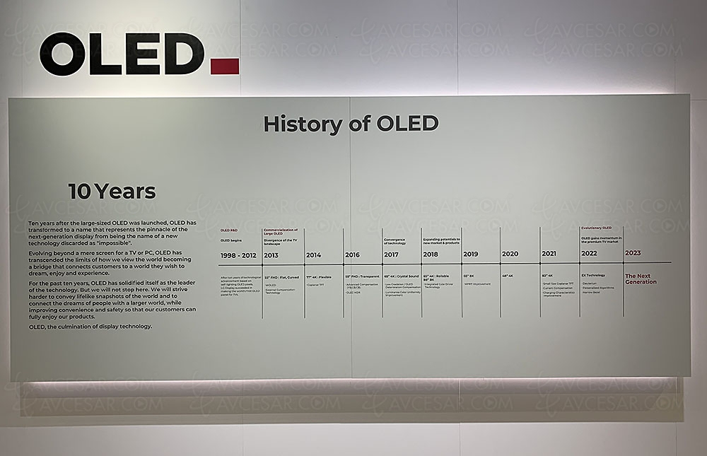 Es decir, según nuestras fuentes nuevamente, el proceso MLA no afectará a todas las diagonales de la serie de televisores LG G3 Oled. Si los modelos de 55'' (140 cm), 65'' (165 cm) y 77'' (196 cm) se beneficiarán, los modelos de 83'' (211 cm) y 97'' (246 cm) no lo harán. . En cualquier caso, tal y como adelantábamos a través de una noticia anterior publicada con motivo de la feria IFA BerlÃn 2022 el pasado mes de septiembre (ver nuestra noticia IFA 22 > Panel de TV Oled, LG Display anuncia una nueva generación 2023), el teaser orquestado por LG en su stand que anuncia una nueva generación de paneles Oled para 2023 (ver foto arriba), por lo tanto, se refiere a la integración de la tecnologÃa MLA.