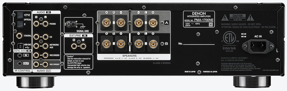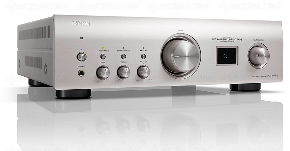 Reemplazando al PMA-1600NE, el Denon PMA-1700NE ofrece la misma potencia, 2 x 70 W a 8 ohmios / 2 x 140 W a 4 ohmios, a través de un circuito de alimentación de gran tamaño con amplias reservas de corriente. Este último, derivado de los transistores de efecto de campo (FET) Mos Ultra High Current (UHC), con diodos Schottky, permite entregar altas intensidades para aumentar la dinámica del sonido. Sobre todo, esto permite adaptarse a todo tipo de altavoces, incluso a aquellos que se consideran difÃciles de manejar.