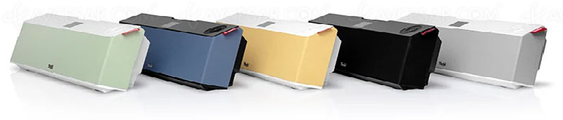 El altavoz se puede colocar plano o vertical sobre sus patas integradas. También se puede colgar en la pared con los soportes de montaje incluidos. Disponible a un precio indicativo de 449,99 €, Musicstation se puede personalizar con frontales de colores (5 colores diferentes) disponibles individualmente a un precio indicativo de 39,99 €.