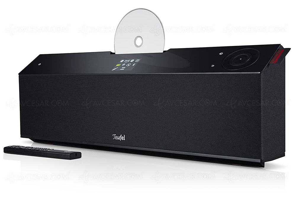 Controlable con un control remoto o con la aplicación Teufel Remote en un teléfono inteligente iOS o Android, el Musicstation está equipado con dos altavoces de rango completo y dos boomers frontales, además de otros dos ejemplares de rango completo orientados a 45 ° aproximadamente y colocados en ambos extremos para la difusión lateral del sonido (ver foto arriba), con el objetivo de recrear un ambiente envolvente. También podemos mencionar una carga bass-reflex (hay dos rejillas de ventilación en la parte posterior del Musicstation). La potencia total entregada por el amplificador Clase D es de 90 vatios.