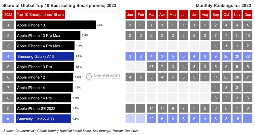 Mercado de teléfonos inteligentes 2022, campeón de iPhone 13 en todas las categorías