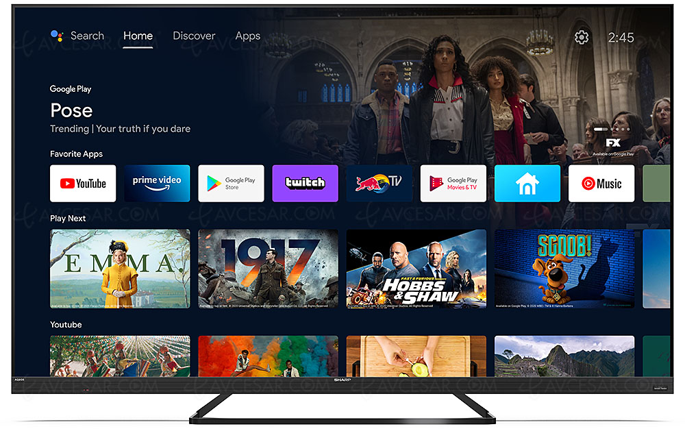 Para ser completo, también hay que señalar un sensor de luz ambiental, un micrófono integrado en uno de los dos mandos a distancia previstos para el control por voz del televisor mediante Google Assistant y compatibilidad con Apple TV y Stadia, además de los clásicos. Netflix, Amazon Prime, Disney +…