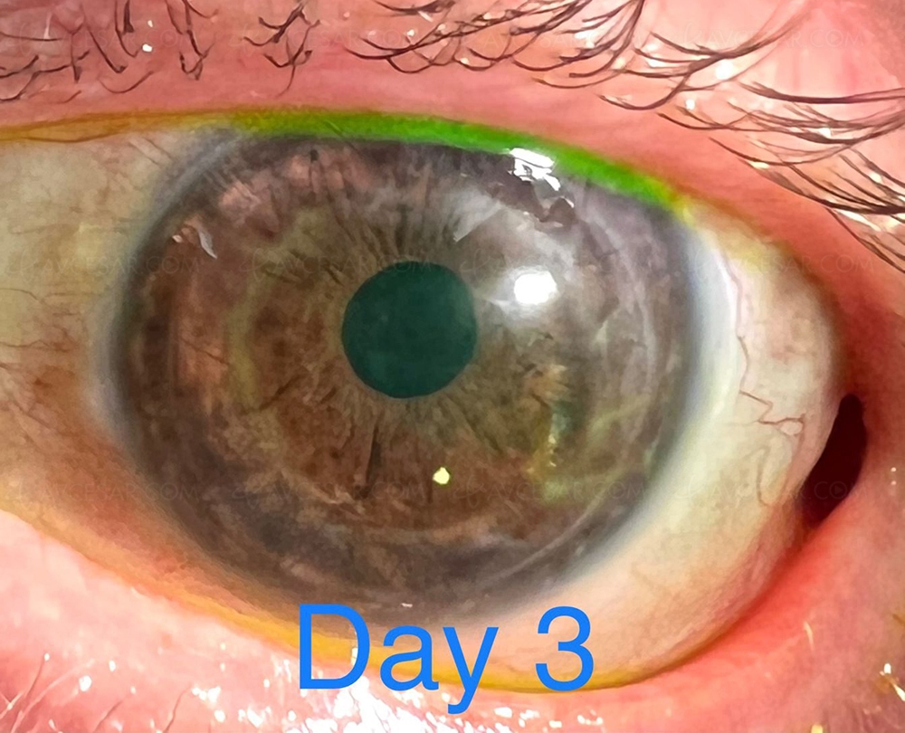 Autoproclamado amante de la fotografía, ha utilizado durante mucho tiempo el iPhone y otros dispositivos profesionales para observar y registrar la evolución de la condición ocular de sus pacientes. Se apresuró a adoptar el iPhone 13 Pro para sus prácticas. Como él mismo explica, no es especialmente el nivel de precisión de la nueva lente lo que lo sedujo, incluso si es impresionante (ver foto arriba), sino especialmente el lado práctico, capturar una foto de este tipo en solo unos segundos en comparación con un equipo profesional. Además, enfatiza la capacidad de guardar y archivar fácilmente imágenes en archivos de pacientes, sin mencionar el intercambio de fotos, lo que permite a los pacientes enviar instantáneas de forma remota para garantizar un monitoreo receptivo de las operaciones quirúrgicas.