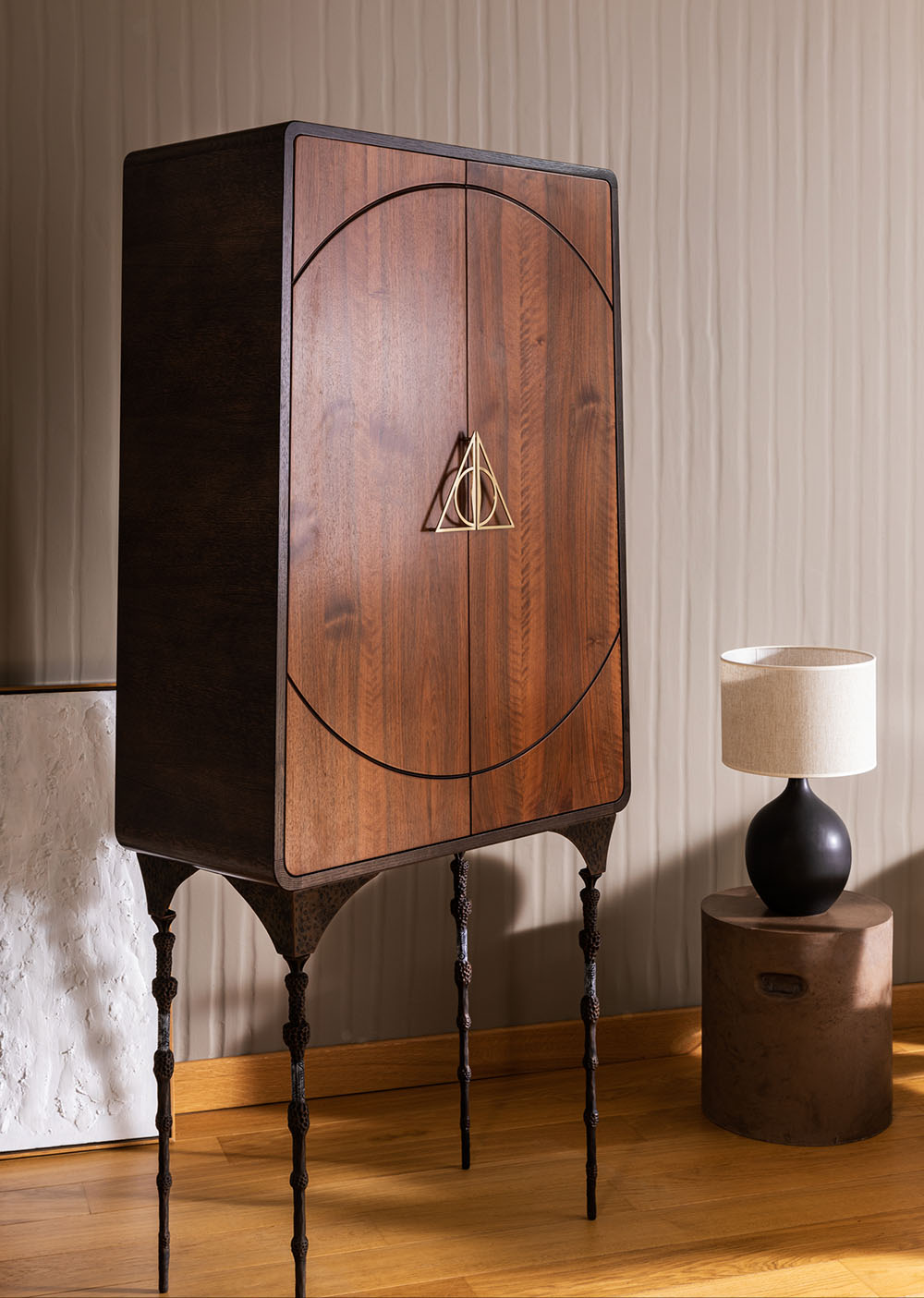 AsÃ, la librerÃa de nogal Hallows, con sus patas de acero moldeado y martillado al estilo de una varita de Saúco, recuerda tanto el estilo de los icónicos años 60 como la última entrega de la saga Harry Potter con su sÃmbolo de latón de las Reliquias de la Muerte actuando como manijas. Bajo la licencia oficial de Harry Potter, la biblioteca Hallows se publica en solo 100 copias, acompañadas de su certificado de autenticidad y su fuente de materiales. Apertura de la pre-order el 20 de abril al precio orientativo de 7.190€.