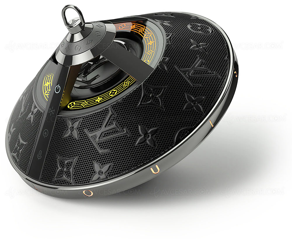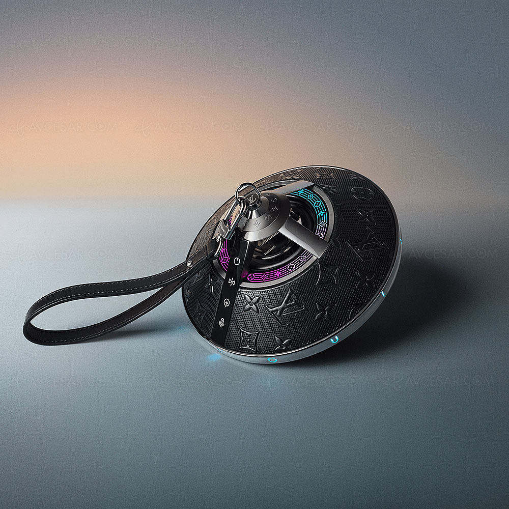 En la parte superior, los patrones de LED recuerdan la icónica flor del monograma de Louis Vuitton que se sincronizan con la música. Se utilizan tres micrófonos para gestionar las llamadas de voz. La difusión de sonido de 360 ° es proporcionada por un boomer de 3 '' (7,62 cm) y dos tweeters de 0,75 '' (1,9 cm). La potencia de 2 x 30 W es proporcionada por amplificación digital.