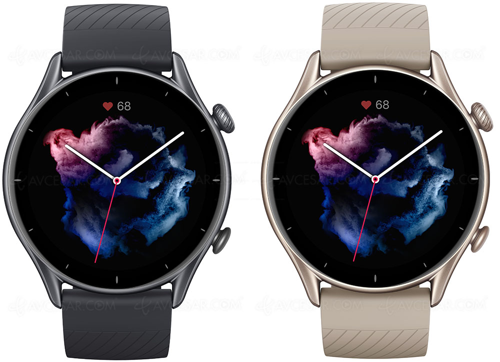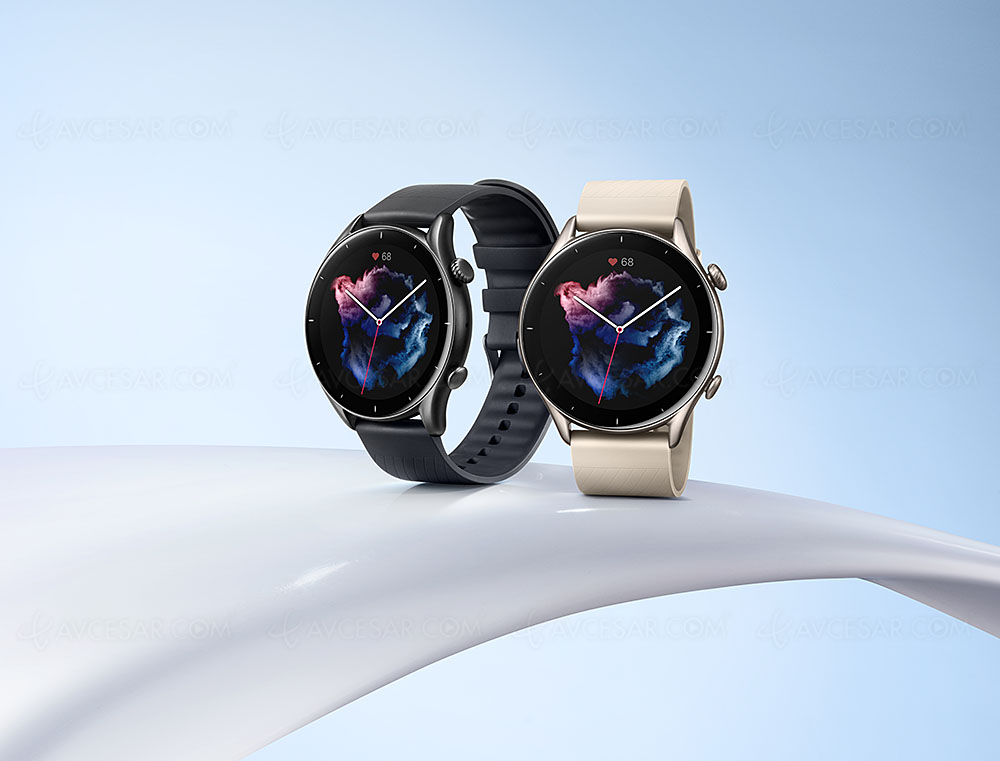 Entre los tres nuevos relojes Amazfit conectados -GTR 3 Pro, GTR 3, GTS 3-, la versión GTR 3 está equipada con una pantalla Amoled HD de 1,39 '' (3,53 cm y 326 ppp).