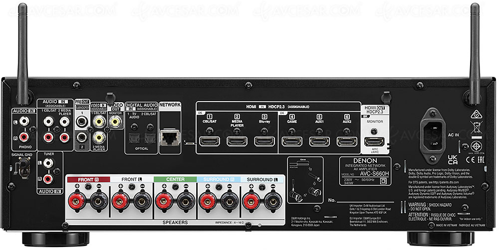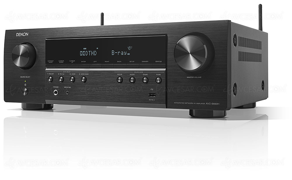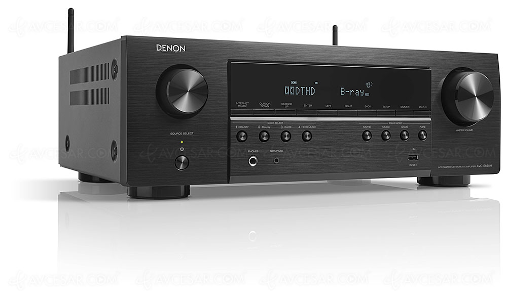 Modelo 5.2, el Denon AVC-S660H muestra una potencia de 5 x 135 W en 6 ohmios (5 x 75 W en 8 ohmios) y obviamente incluye decodificadores Dolby TrueHD y DTS-HD. Aún en el programa, un OSD con caracteres grandes para configurar / controlar el amplificador cómodamente instalado, lejos, en un sofá y procesado para mejorar la reproducción de sonido de archivos de audio comprimidos. También notamos una fabricación optimizada para reducir la ruta de la señal los riesgos de interferencia.