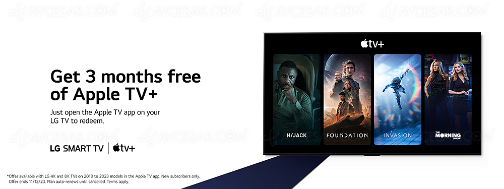 A través de la aplicación Apple TV, los propietarios de LG Smart TV pueden acceder a una prueba gratuita de tres meses para la plataforma de streaming Apple TV+. Tenga en cuenta que la oferta es válida hasta el 12 de noviembre y se refiere a los modelos de televisores Ultra HD 4K y UHD 8K comercializados de 2018 a 2023, es decir, equipados con WebOS 4.0 hasta WebOS 23.