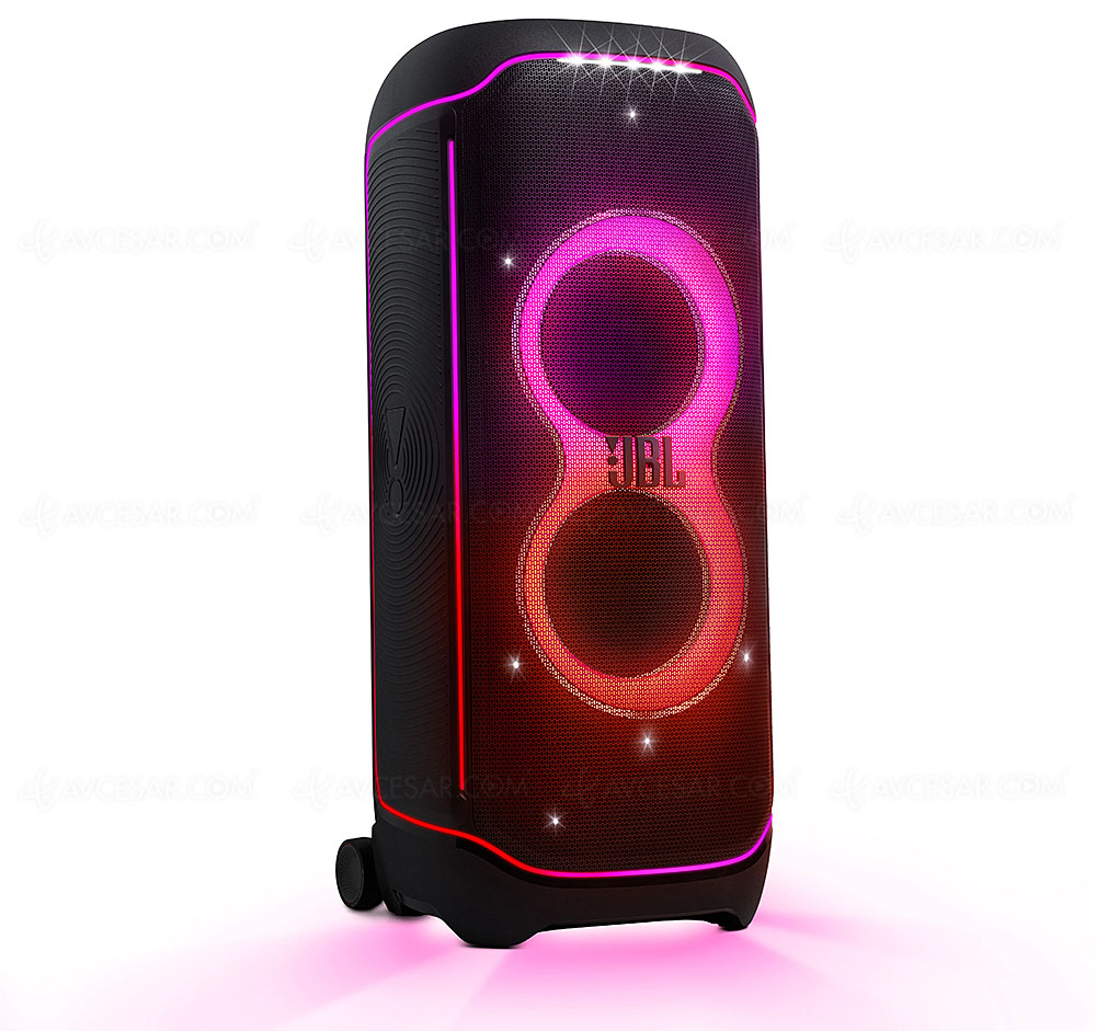 Compatible con Wi-Fi 6 y Bluetooth 5.3, el altavoz móvil JBL PartyBox Ultimate tiene una potencia potente para animar tus fiestas, hasta 1100 W, y se puede mover fácilmente a pesar de su imponente tamaño (105 cm x 45,5 x 44 cm). ) y su importante peso (39,5 kg), gracias a su asa y sus grandes ruedas.