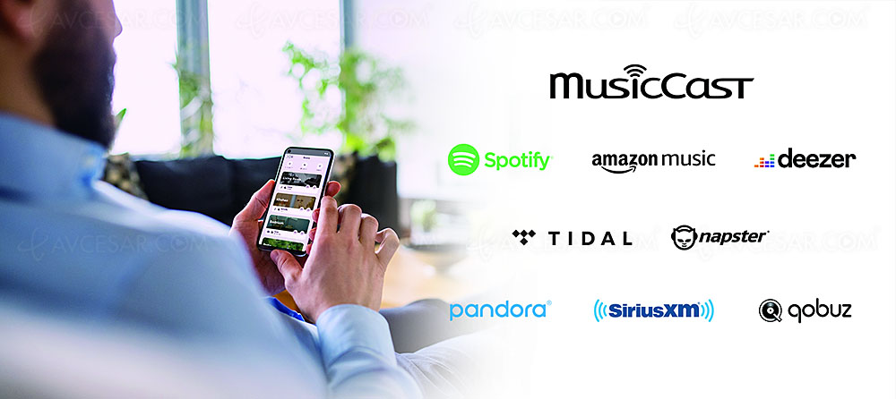 Del mismo modo, accede directamente a diversos servicios de música en streaming (Amazon Music HD, Apple Music, Deezer, Qobuz, Spotify, Tidal, etc.). Finalmente, la función gateway de audio UPnP (DLNA), inalámbrica mediante Wi-Fi ac Dual Band o mediante el puerto Ethernet, permite acceder, por ejemplo, a un disco duro Nas para aprovechar los archivos de audio disponibles.