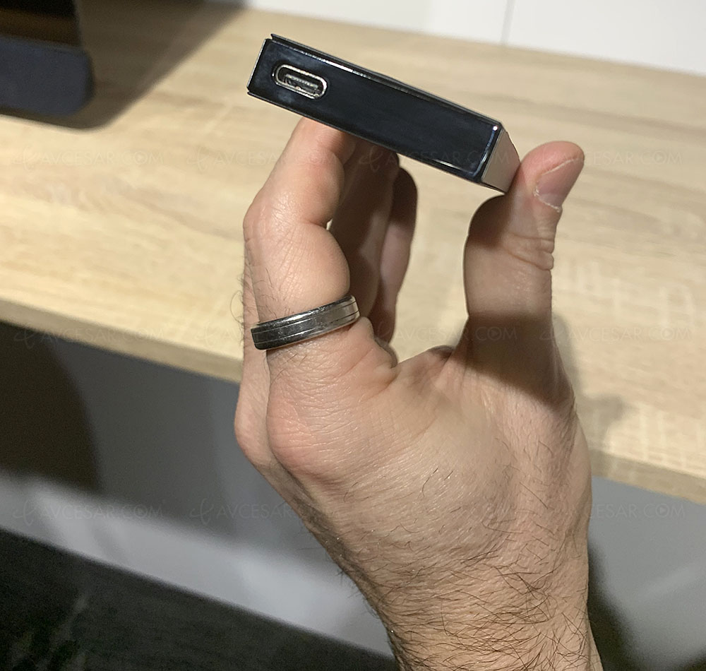 El mando a distancia de los televisores Philips OLED908 será recargable en 2023 (a través de USB-C). También ofrece un nuevo atajo de teclado, "123", para encender o apagar la luz de fondo. Este último también se puede asociar al sensor de movimiento integrado para activarse automáticamente en cuanto se coge.