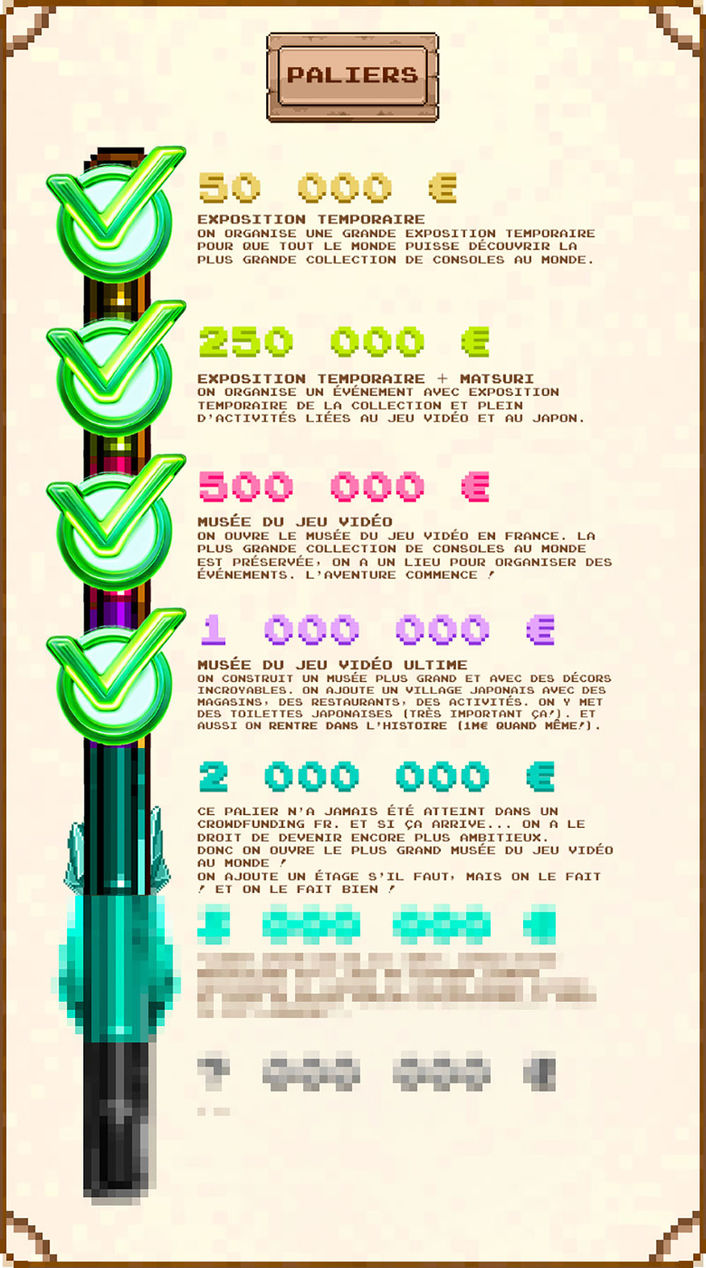 El museo no será una serie de pasillos de exhibición ya que se trata de exhibir estas obras en entornos únicos y narrativos. Al mismo tiempo, se construirá una aldea japonesa con tiendas y restaurantes, para financiar el mantenimiento y las novedades del museo, destacando al mismo tiempo la cultura japonesa, asociada a la historia de los videojuegos. Apertura prevista para 2026. Consulte la página del Kisskissbankbank del proyecto para obtener más detalles y posiblemente participar en su creación, los próximos niveles a alcanzar parecen una locura...