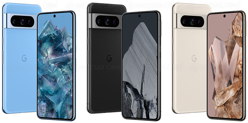En cuanto al diseño, destacamos un marco de aluminio pulido y, por primera vez en un Pixel Pro, una ventana trasera mate. El procesador es un modelo Google Tensor G3 Nona Core (1 Cortex-X3 de 3 GHz + 4 Cortex-A715 de 2,45 GHz + 4 Cortex-A510 de 2,15 GHz) grabado en 4 nm, soportado por un chip gráfico Immortalis. GB de memoria Ram y 128 GB, 256 GB o 512 GB de memoria flash. Este poder permite en particular ciertas funciones de IA, como Magic Audio Eraser, que se utiliza para borrar sonidos no deseados de los videos.