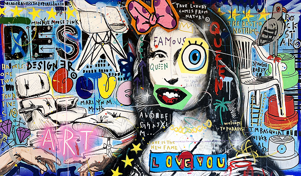 “Estoy muy feliz de haber colaborado con LG en este proyecto. Mi obra insignia, Mona Design, tiene como elemento principal a Mona Lisa, una de las más grandes figuras del arte, desviada con varios edredones en el rostro por un lado más moderno y chic, explica Jisbar. Para estar en lÃnea con el diseño y el aspecto premium de los televisores LG Oled Gallery, elegà las manos de "creación de Adam" de Leonardo da Vinci y tres sillas diferentes para mostrar la constante evolución del diseño. Como guiño a mi arte, encontramos en particular las puntas de spray, una de mis herramientas favoritas en la realización de mis trabajos â€.