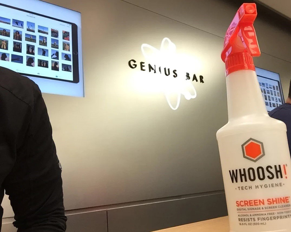 Hace unos meses, el canal de YouTube The Shopping Expert se preguntaba cómo los dispositivos expuestos en las tiendas Apple siempre lucÃan tan limpios, especialmente después de haber sido tocados por miles de clientes con sus dedos grandes y grasientos. ¡El secreto se llama Whoosh! (disponible en Amazon) y es un producto inodoro y no tóxico utilizado por los empleados de estas tiendas. Este lÃquido para pantallas es especialmente eficaz contra el polvo, las marcas y otras manifestaciones antiestéticas. Además, desinfecta la pantalla porque, francamente, es mejor no saber dónde han estado todos esos dedos antes de tocar los pobres iPhones de demostración.
