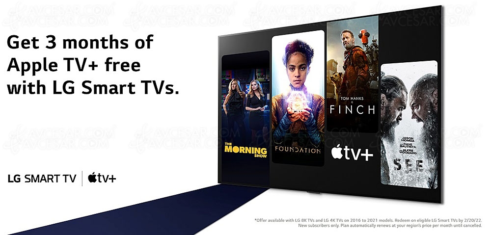 Buenas noticias para los propietarios de un televisor LG Oled / LCD, modelos 2016 a 2021, a partir del 15 de noviembre podrán beneficiarse de una oferta de suscripción gratuita de 3 meses al servicio OTT Apple TV +.