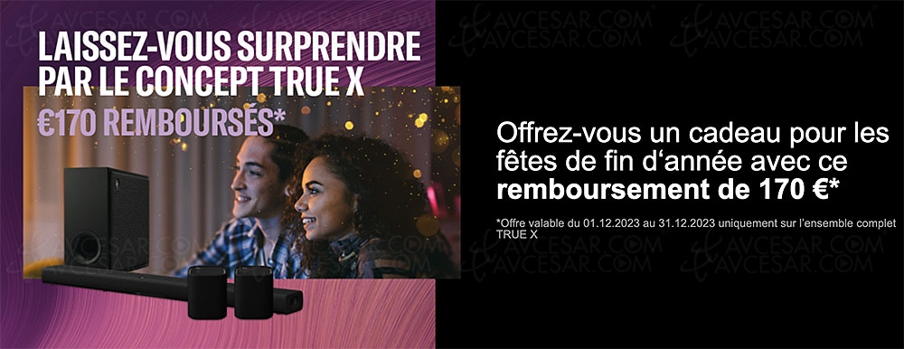 Hasta el 31 de diciembre, por la compra de una barra de sonido Yamaha True o Yamaha SR-X50A completa + un par de altavoces Yamaha WS-X1A, el fabricante japonés te reembolsará 170 euros.