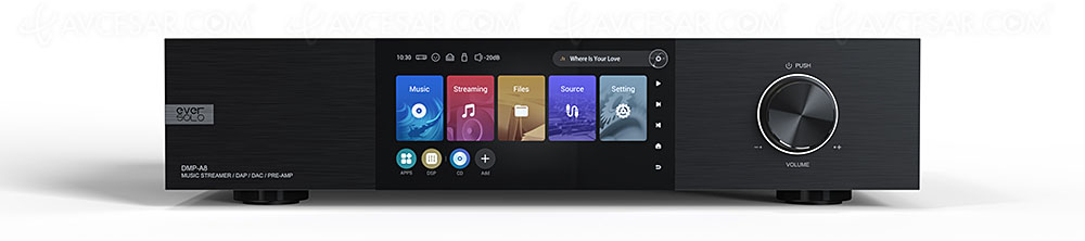 En términos de equipamiento, notamos un AKM doble Dac AK4191EQ/AK4499EX firmado que acepta archivos PCM de hasta 768 kHz/32 bits y DSD512 (22,4 MHz), y osciladores (relojes) de femtosegundo Accusilicon 45, 1584 MHz y 49,152 MHz con ultra -ruido de fase bajo para limitar al máximo el jitter y ofrecer la reproducción de sonido más transparente posible. Es decir, el EverSolo DMP-A8 cuenta con la exclusiva tecnologÃa EOS (EverSolo Original Sampling-Rate Audio Engine) para garantizar una gestión perfecta de bits con aplicaciones de transmisión de audio.