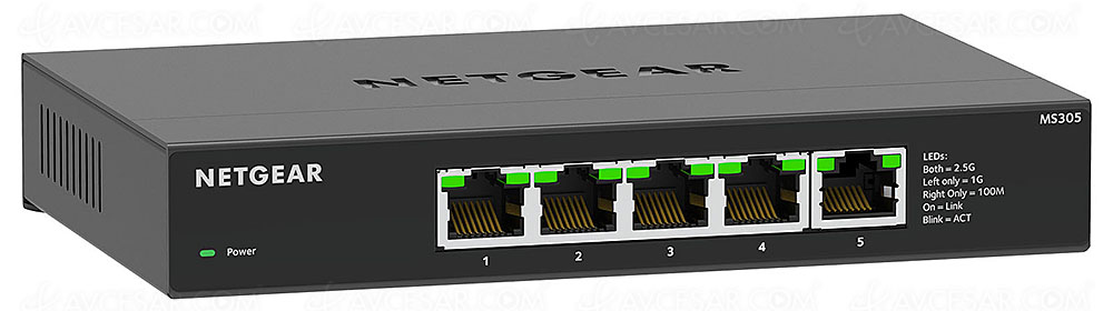 De même, vous souhaitez peut-être multiplier le/les ports 2,5 Gb/s de votre récente box internet (Bbox Ultym, Freebox Pop, Livebox6/7…) pour en profiter sur de nombreuses prises Ethernet du votre casa. En cualquier caso, es posible con el switch Netgear MS305 equipado con cinco puertos de 2,5 Gb/s, simplemente conéctalo al puerto apropiado y listo.