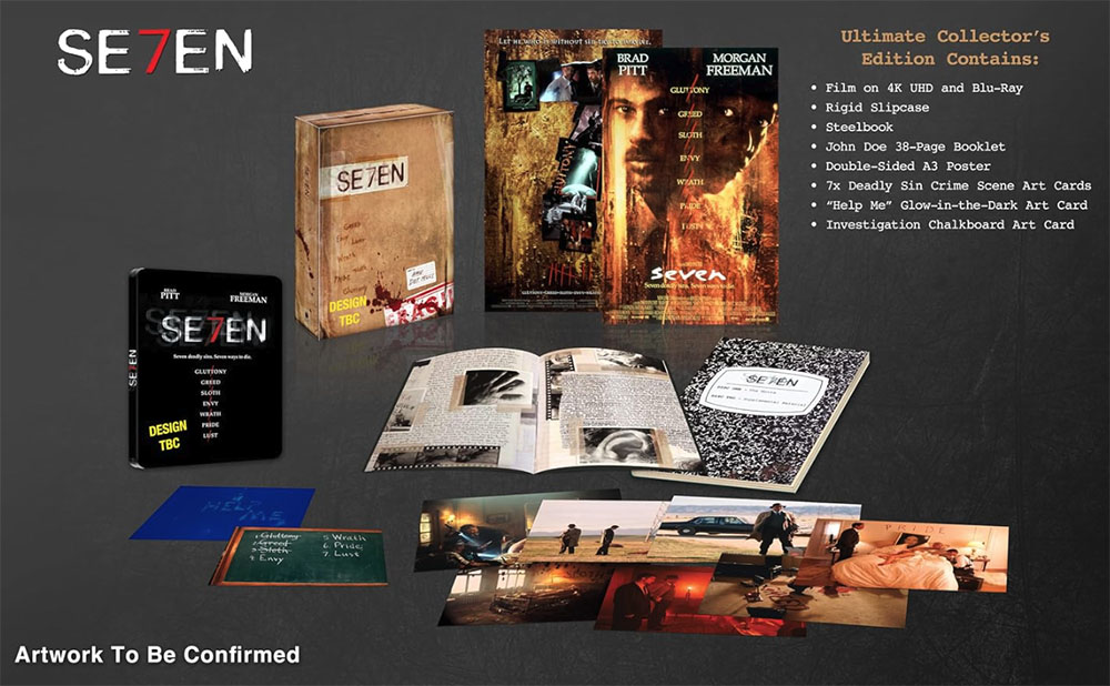 Una pelÃcula de culto si alguna vez las hubo, se merecÃa la prestigiosa edición que nos espera (en el visual de arriba está todo en inglés, a la espera de la versión final). Además de la caja de coleccionista ofrecida en un magnÃfico estuche Steelbook, la pelÃcula se presentará en 4K Ultra HD y Blu-Ray. Los pasteles irán acompañados de un folleto de 38 páginas titulado John Doe que cubre la génesis de la pelÃcula, un póster de doble cara, 7 tarjetas que muestran las 7 escenas del crimen y los 7 pecados capitales, un “Ayúdame†fotoluminiscente y un Tarjeta de arte “junta de investigaciónâ€.