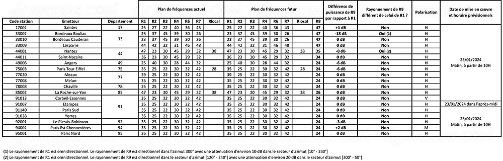 Si los transmisores en cuestión a partir del 23 de enero ya están disponibles en el sitio web de Arcom (ver más abajo, haga clic para ampliar el documento), la lista de otros tramos de activación está empezando a tomar forma.