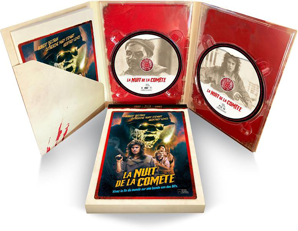 Anunciada el 29 de febrero en combo Blu-Ray/DVD (Edición de coleccionista limitada) por Rimini Éditions, La noche del cometa y su banda sonora será un tema de los 80 se ofrecerá en VO/VF DTS-HD MA 2.0 (doblado mono) con subtÃtulos en francés, en formato de imagen 1,85. Además, un folleto de 24 páginas escrito por Marc Toullec: Dos hermanas y el fin del mundo. Precio orientativo: 24,99 euros.