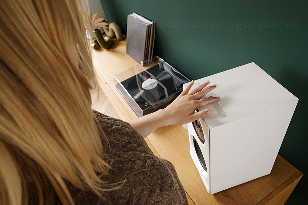 En cuanto a conectividad, el Teufel M2 dispone de una entrada estéreo RCA y otra óptica. De este modo, es posible conectar un televisor, un reproductor de CD de audio o un tocadiscos de vinilo. Notamos otra toma óptica llamada Secundaria para la conexión por cable de los dos altavoces. Es decir, estos también se pueden asociar de forma inalámbrica. Es una pena que los Teufel M2 no incluyan, como el nuevo Teufel M25 Ultima Active, una toma HDMI con función eARC. Precisión, el puerto USB-C está dedicado al mantenimiento y actualización del firmware.