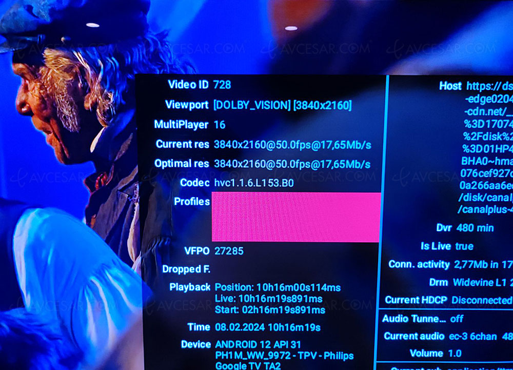 La verificación se podrÃa realizar en un modelo Philips OLED907, referencia en la gama 2023 y Todo funciona perfectamente, tanto para el contenido en vivo como para el disponible bajo demanda. Del mismo modo, también se requiere HDR Dolby Vision en el contenido de la marca Apple TV+ al que se puede acceder de forma gratuita a través de myCanal (ver foto a continuación).