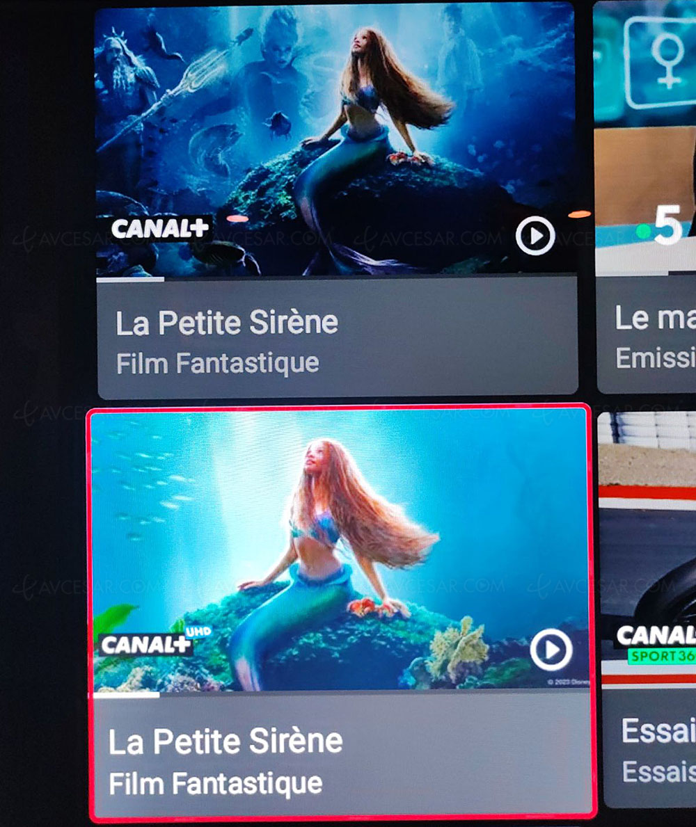 Para disfrutar de Canal+ UHD 4K en vivo, por supuesto, debes elegir el canal Canal+ UHD en la programación (encerrado en rojo en la segunda foto a continuación) y no el canal 4 (encerrado en rojo en la primera foto a continuación).